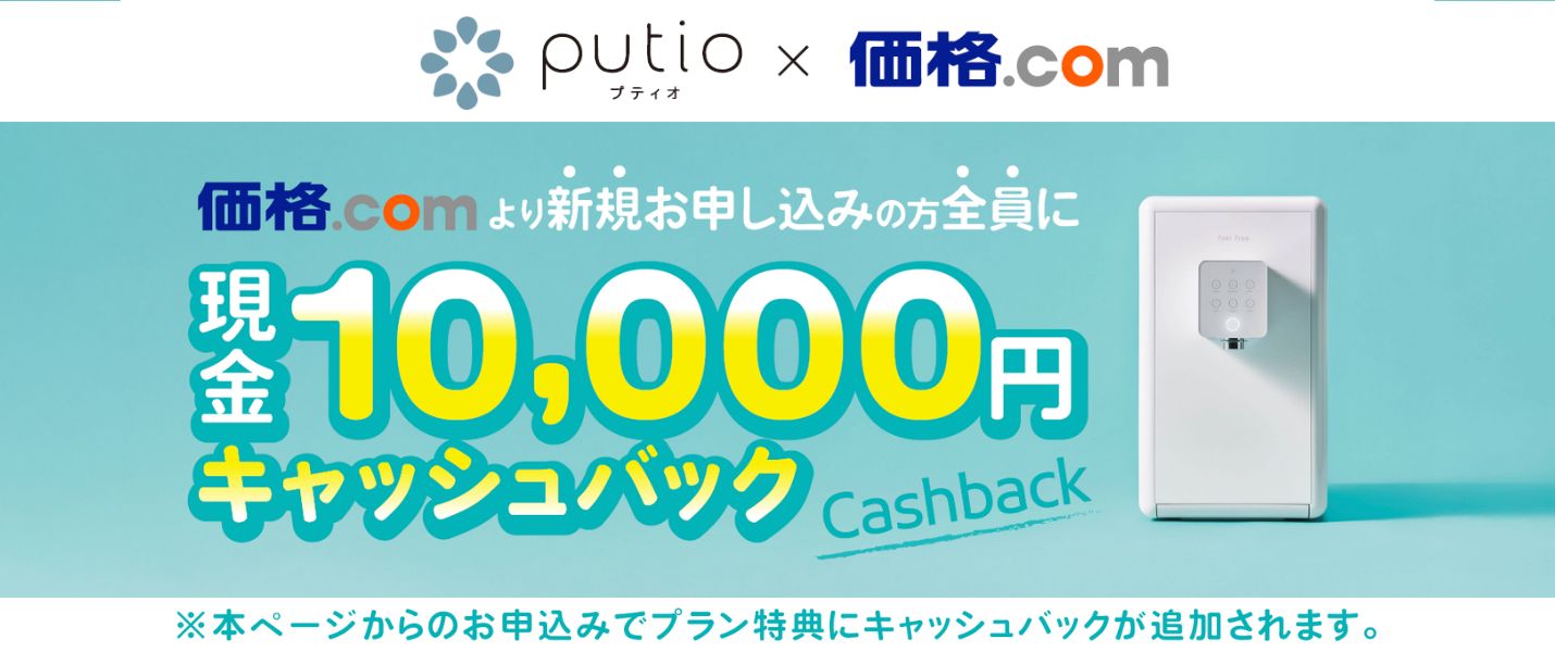 | メンテナンス方法 | 業者メンテナンスフィルターカートリッジ交換:6か月に1回 サーバー本体交換:年1回※あんしんサポートパックは、年1回のサーバー本体交換、故障時の無償対応などputioを快適利用するための5つのあんしんサービスです。 |